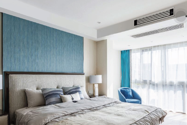 滿足臥室冷暖需求的同時,配合回型吊頂靠外墻安裝,吊頂預留600mm深度即可